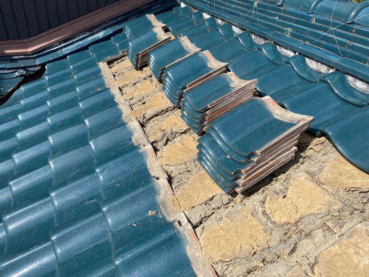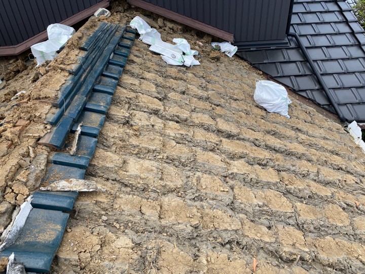 一枚一枚降ろし、瓦のしたからは、土が出て来ましたが、これもきれいに撤去します。
