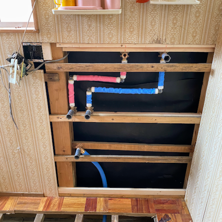 これから、床と壁を切って、配管を直します。使い勝手が良くなるように、がんばります!