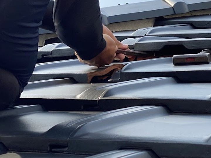 割れた瓦を撤去し、新しい瓦を差し込んで、完了。