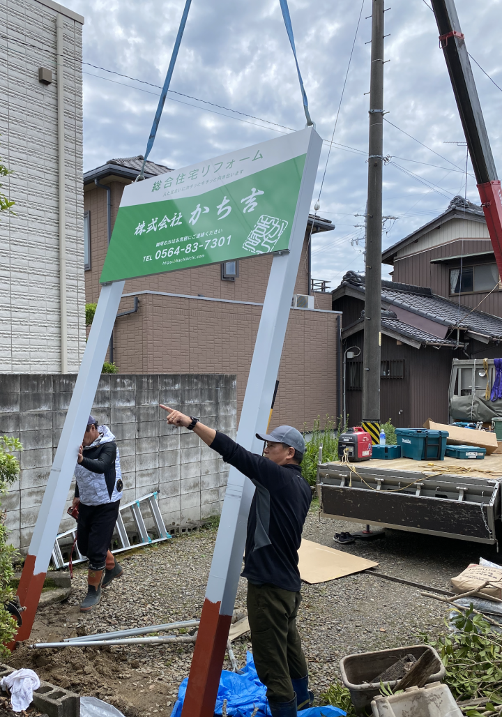 心機一転事務所の駐車場にお客様をお迎えする顔として、弊社のカラーを使った看板を岡崎にあるナカプラス株式会社 様に作成をして頂きました。気軽に皆様のご相談頂き、素敵な暮らしがご提案できるように頑張って行きたいと思います。今後ともよろしくお願いいたします。